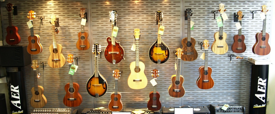 We have instruments from Fender, Barnes & Mullins, Countryman, Lanikai and Brunswick